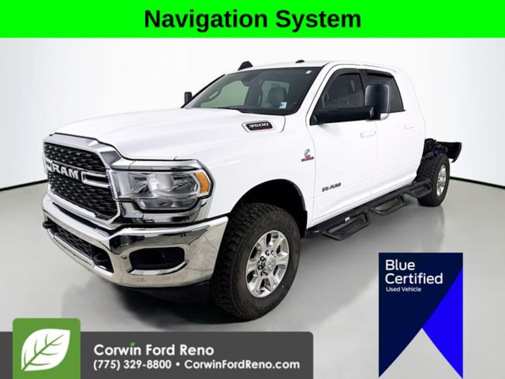 This Ram 3500 is well equipped and includes these key features and benefits, Four Wheel Drive, Blind-Spot Monitors, Navigation System, Touchscreen Controls, Backup Camera, Keyless Access with Push Button Start, Drowsiness Alert, Automatic Headlights, Apple CarPlay, Auto-Dimming Rear-View Mirror, Dual Glove Boxes, Foam Bottle Insert (Door Trim Panel), Footwell Courtesy Lamp, Front Fog Lamps, Glove Box Lamp, Leather Wrapped Steering Wheel, Level A Equipment Group, Locking Lower Glove Box, Power Adjustable Pedals, Premium Cloth 40/20/40 Bench Seat, Quick Order Package 2HZ Big Horn, Rear Dome w/On/Off Switch Lamp, Steering Wheel Mounted Audio Controls, Sun Visors w/Illuminated Vanity Mirrors, Universal Garage Door Opener, Wheels: 18" x 8.0" Polished Aluminum. CARFAX One-Owner. Priced below KBB Fair Purchase Price! Available at Corwin Ford Reno located at 11111 South Virginia St.