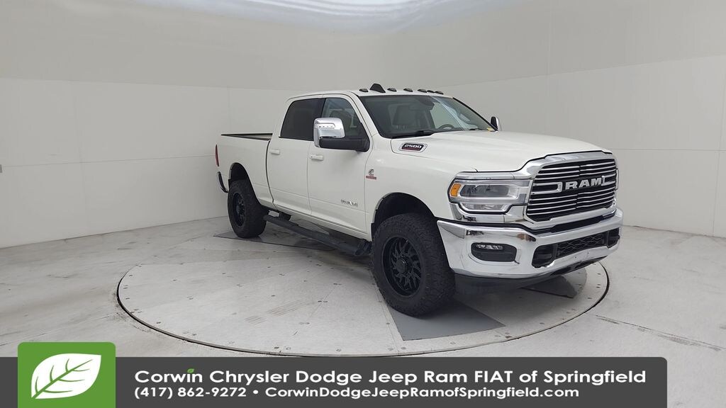 Corwin Chrysler Dodge Jeep Ram Fiat is pleased to offer this. Ram 2500 that is well equipped and includes these key features and benefits, Heated and Cooled Seats, Blind-Spot Monitors, Navigation System, Touchscreen Controls, Backup Camera, Keyless Access with Push Button Start, Apple CarPlay, Android Auto, Voice Recognition, Bluetooth Hands-Free, Wi-Fi Hotspot, 4x4 / 4 Wheel Drive / AWD, 12" Touchscreen Display, 2nd Row In Floor Storage Bins, 4G LTE Wi-Fi Hot Spot, Alexa Built-In, Alloy wheels, Apple CarPlay, Auto Adjust In Reverse Exterior Mirrors, Auto Dim Exterior Mirror, Auto High Beam Headlamp Control, Auto Power-Folding Mirrors, Auto-Dimming Exterior Passenger Mirror, Blind Spot & Cross Path Detection, Bright Front Bumper, Bright Rear Bumper, Chrome Bumper Package, Chrome Exterior Mirrors, Connected Travel & Traffic Services, Connectivity - US/Canada, Disassociated Touchscreen Display, Exterior Mirrors Courtesy Lamps, Exterior Mirrors w/Heating Element, Exterior Mirrors w/Memory, Exterior Mirrors w/Supplemental Signals, Foam Bottle Insert (Door Trim Panel), For Details, Visit DriveUconnect.com, For More Info, Call 800-643-2112, Forward & Reverse Utility Lights, Front LED Fog Lamps, Global Telematics Box Module (TBM), Google Android Auto, GPS Antenna Input, GPS Navigation, HD Radio, Integrated Voice Command w/Bluetooth, Laramie Level 1 Equipment Group, LED Reflector Headlamps, Mirror Running Lights, Off-Road Information Pages, ParkSense Front/Rear Park Assist System, Power Adjust Mirrors, Power Adjustable Convex Aux Mirrors, Power Adjustable Pedals w/Memory, Power Heated Fold Telescopic Mirrors w/Memory, Power Telescoping Mirrors, Protection Group, Quick Order Package 2HH Laramie, Radio: Uconnect 5 Nav w/12.0" Display, Radio/Driver Seat/Mirrors/Pedals Memory, Rain Sensitive Windshield Wipers, Rear Power Sliding Window, Rear Window Defroster, Remote Tailgate Release, Selectable Tire Fill Alert, SiriusXM Radio Service, SiriusXM w/360L, Tow Hooks, Trailer Tow Pages, Wheels: 18" x 8.0" Polished Aluminum.