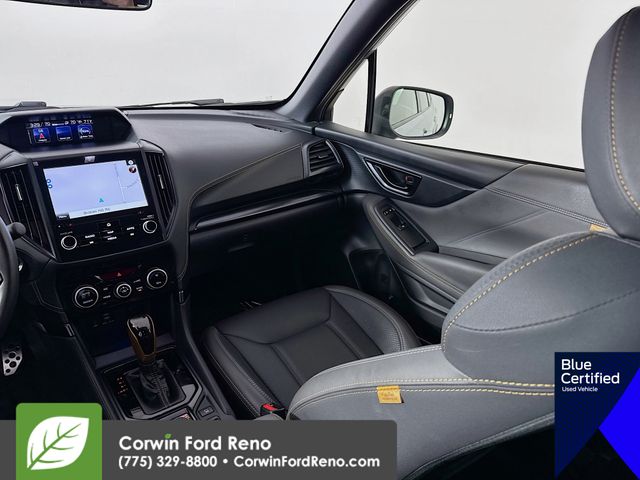This Subaru Forester is well equipped and includes these key features and benefits, All Wheel Drive, Adaptive Cruise Control, Panoramic Moonroof, Heated Seats, Blind-Spot Monitors, Lane Keeping Assist, Navigation System, Touchscreen Controls, Backup Camera, Keyless Access with Push Button Start, Automatic Headlights, Apple CarPlay, Android Auto, Voice Recognition, Bluetooth Hands-Free, Collision Warning System, 8" Audio w/harman/kardon & Power Rear Gate, Auto-Dimming Exterior Mirror w/Approach Light, Auto-Dimming Mirror w/Compass & HomeLink, Cargo Sidewall Protector, Navigation System, Power Rear Gate, Radio: Subaru Starlink 8.0" Multimedia Nav System, Rear Bumper Cover, Rear Seatback Protector - Wilderness, Wilderness Package. CARFAX One-Owner. Priced below KBB Fair Purchase Price! Available at Corwin Ford Reno located at 11111 South Virginia St.