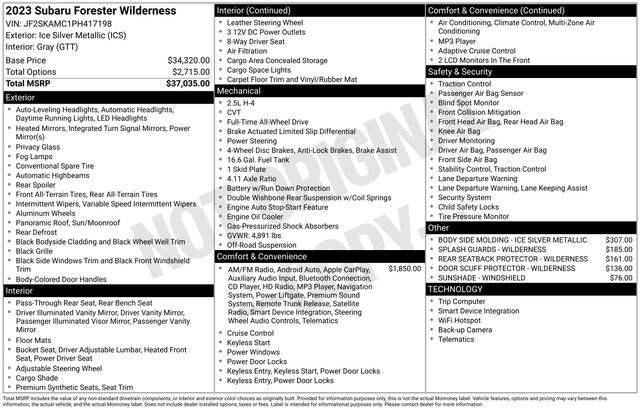 2023 Subaru Forester Wilderness AWD 2.5L 4-Cylinder DOHC 16V Ice Silver Metallic Certified.