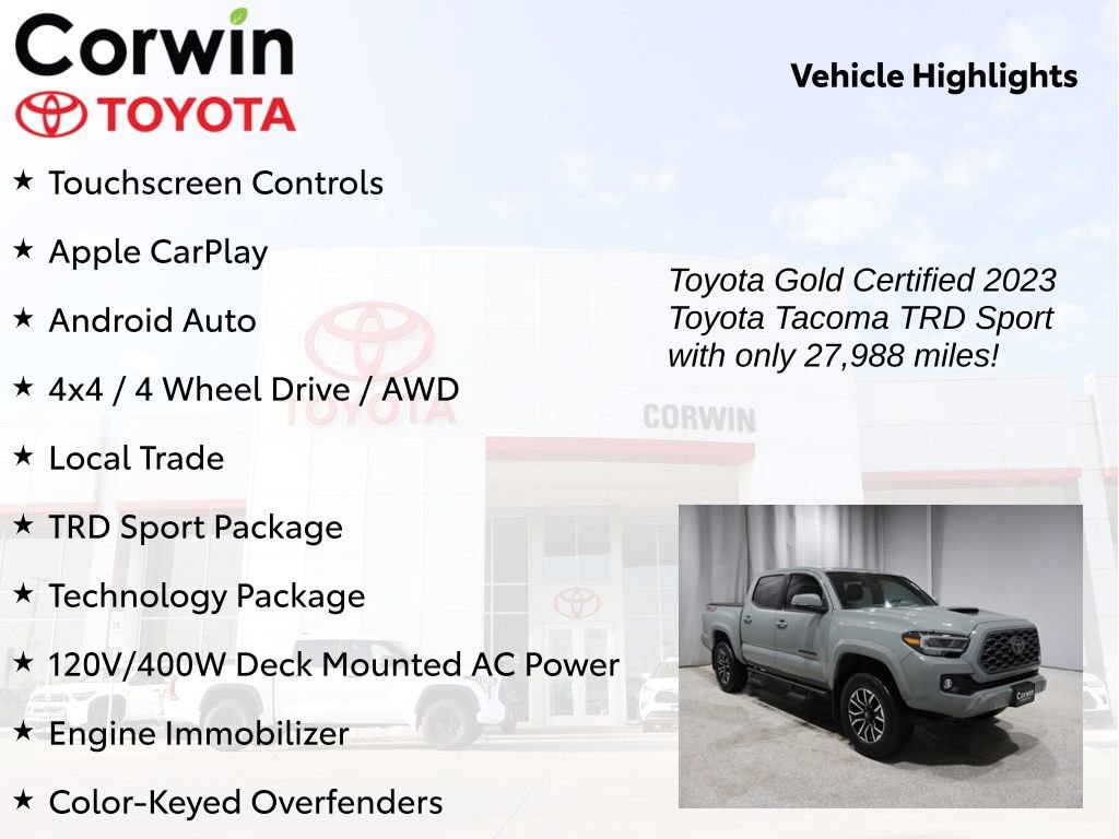 Whether you're looking to conquer the great outdoors or simply need a versatile and capable truck for your daily adventures, this 2023 Toyota Tacoma TRD Sport V6 is the perfect choice. Experience the difference for yourself by scheduling a test drive today. We're confident you'll be impressed by its exceptional performance, advanced technology, and uncompromising quality.