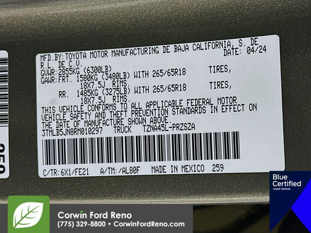 2024 Toyota Tacoma TRD Sport 4WD 2.4L 4-Cylinder Green Certified.