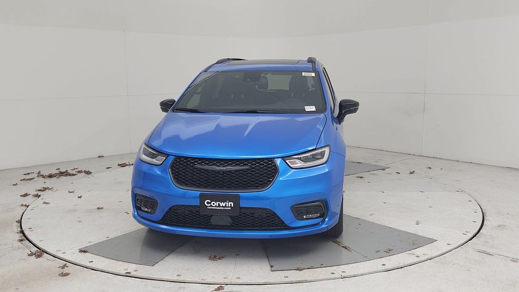Chrysler Pacifica that is well equipped and includes these key features and benefits, 360 Surround View Camera System, Anodized Ink Badging, Black Day Light Opening Moldings, Black Stow 'N Place Roof Rack, Gloss Black Exterior Mirrors, Heavy-Duty Radiator, Navigation System, Premium Rear Fascia Black, Quick Order Package 27P, S Appearance Package, S Badge, Safety Sphere, Trailer Sway Damping, Trailer Tow Group, Wheels: 20" x 7.5" S-Model Aluminum Design 1.