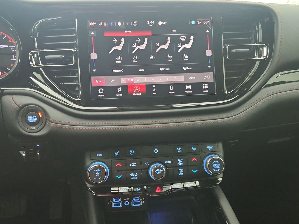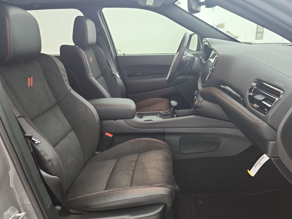 Dodge Durango that is well equipped and includes these key features and benefits, 115V Auxiliary Power Outlet, 2nd Row Fold/Tumble Captain Chairs, 2nd Row Mini Console with Cupholders, 2nd Row Seat Mounted Inboard Armrests, 3rd Row Floor Mat and Mini Console, 6-Passenger Seating, 7 and 4 Pin Wiring Harness, Adaptive Cruise Control with Stop, Auto High Beam Headlamp Control, Auto-Dimming Exterior Driver Mirror, Black Dodge Grille Badge, Black Roof Rails, Blacktop Leather SRT Performance Seats, Blacktop Redline Package, Blind Spot with Trailer Detection, Class IV Receiver Hitch, Crypto Sweep Etch Accents, Dual Remote USB Port - Charge Only, Exterior Mirrors with Heating Element, Exterior Mirrors with Memory, Exterior Mirrors with Supplemental Signals, Floor Console with Leather Armrest, Full Speed Forward Collision Warning Plus, Gloss Black Badges, Gloss Black Exterior Mirrors, Heated Second Row Seats, Integrated Roof Rail Crossbars, Leather Trimmed Bucket Seats, Leather Wrapped Door Panels, LED Auxiliary Low Beam and Turn Signal, Navigation System, Performance Lower Splitter, Power 6x9 Multi-Function Foldaway Mirrors, Power 8-Way Driver Memory 8-Way Passenger Seats, Power Driver/Passenger 4-Way Lumbar Adjust, Power Sunroof, Power Tilt and Telescopic Steering Column, Premium Door Trim Panel, Premium Instrument Panel, Quick Order Package 22T GT Plus, Radio/Driver Seat/Mirrors Memory, Red Accent Stitching, Satin Black Dodge Tail Lamp Badge, SRT Rear Spoiler, Trailer Brake Control, Ventilated Front Seats.