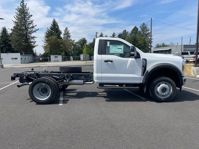 Ready for work, our 2024 Ford F-550 XL Standard Cab Chassis Cab Dually 4X4 is commanding and capable in Oxford White! Motivated by a 7.3 Liter V8 supplying 335hp to a 10 Speed TorqShift Automatic transmission with selectable drive modes. Heavy-duty shocks are standard for confident handling even under heavy loads, and this Four Wheel Drive truck shows off a fierce Ford face. Our F-550's bold grille complements LED roof-clearance lights, quad halogen headlamps, a black steel front bumper, front tow hooks, and heated power trailering mirrors. A strong steel frame provides a great foundation for upfitting!