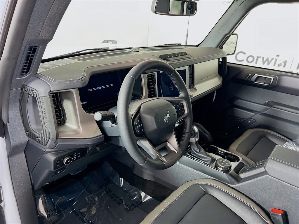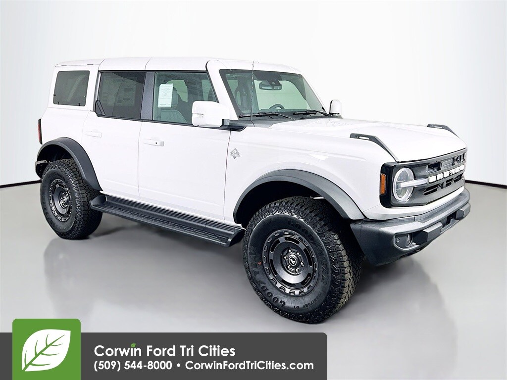 Rugged and appealing, our 2025 Ford Bronco Outer Banks 4 Door 4X4 with the High Lux 314A Pack inspires you to ride the trails with style in Oxford White! Motivated by a TurboCharged 2.3 Liter EcoBoost 4 Cylinder delivering 300hp to a 10 Speed Automatic transmission with terrain management. Also featuring a high-performance off-road suspension, this Four Wheel Drive SUV is a fierce adventure machine that runs free off the pavement and sees nearly 21mpg on the highway. Deluxe details like signature LED lighting, fog lamps, powder-coated tube steps, body-color fender flares, alloy wheels, and a removable top and doors help our Bronco make a bold impression.