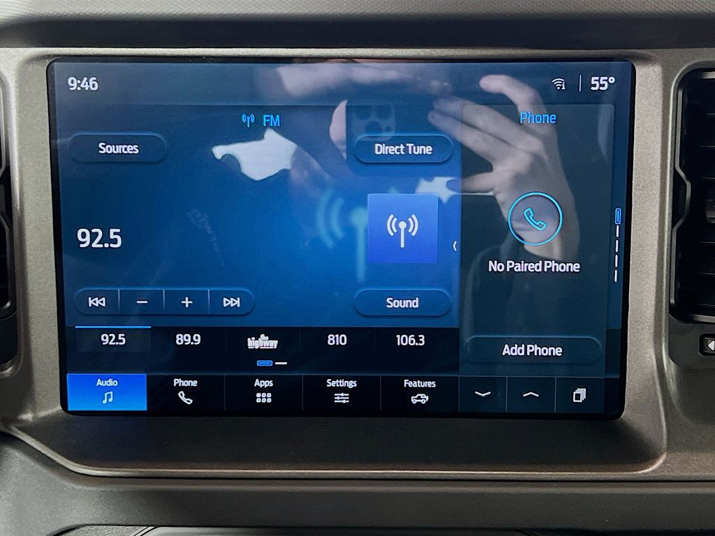 Our Bronco cabin is well-equipped for excitement with comfortable cloth seating, a multifunction steering wheel, single-zone climate control, keyless access, pushbutton ignition, 12V outlets, and smart technology for taking on your world. Highlights include a 12-inch touchscreen, an 8-inch driver display, wireless Android Auto/Apple CarPlay, WiFi compatibility, Bluetooth, voice recognition, and a seven-speaker audio system with SiriusXM compatibility. You'll find plenty of room for gear, too!