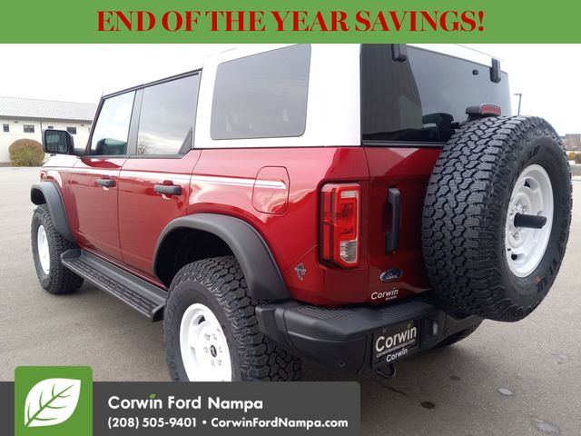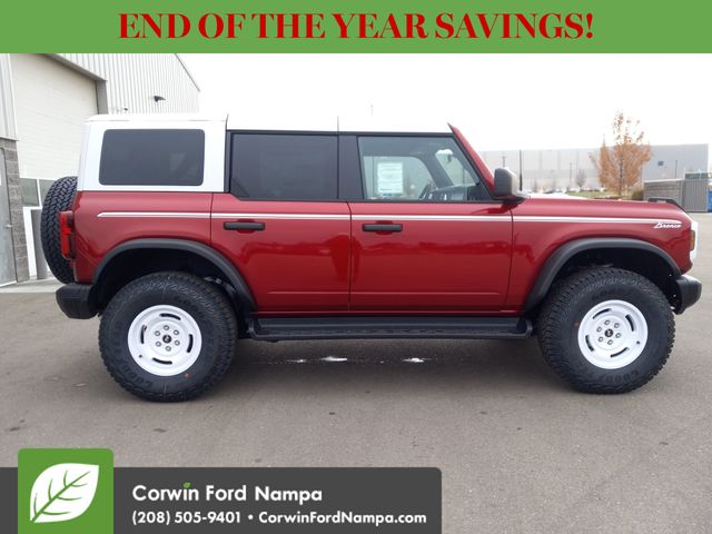 Additional Ford tech benefits can help inspire confidence with blind-spot monitoring, automatic braking, forward collision warning, lane-keeping assistance, a rearview camera, hill start assistance, trailer sway control, stability/traction control, and more. You can get ready to go wild in our Bronco Heritage Edition! Save this Page and Call for Availability. We Know You Will Enjoy Your Test Drive Towards Ownership! Corwin Ford Nampa! Friendly service and aggressive pricing is why we are your new and pre-owned vehicle dealer serving, Nampa, Boise, Meridian, Caldwell, Kuna, Eagle, Emmett, Idaho City, Wilder, New Plymouth, Star, Middleton, Weiser, Payette, Horseshoe Bend, Mountain Home, Idaho, and surrounding states. Price does not include Tax, Title, License, $499 Documentation Fee, Subject to availability, Customer must qualify for rebates, See Dealer for Details. $1000 - Bonus Customer Cash. Exp. 01/05/2026 $1000 - Final Days Mega Bonus Cash. Exp. 01/02/2026 $1000 - Retail Bonus Cash. Exp. 01/05/2026