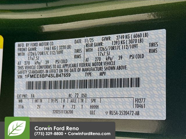 See us today at Corwin Ford Reno or call us at (775) 329-8800. Family owned for over 100 years! Excellent selection of New and Used vehicles, Financing options. Serving Reno, Carson City, Sparks, the North Valleyâs, Spanish Springs, Verdi, Virginia City, the Carson Valley, and Northern Nevada. *All Prices plus applicable sales tax, and a license, and documentary service fee of $627.75 will be added to sales price or capitalized cost of the vehicle. One vehicle unless otherwise noted and subject to prior sale without notice. While supplies last. EPA mileage estimates are for newly manufactured vehicles only. Your actual mileage will vary depending on how you drive and maintain your vehicle. Rebates included: $1000 - Bonus Customer Cash. Exp. 01/05/2026 $1000 - Final Days Mega Bonus Cash. Exp. 01/02/2026 $1000 - Retail Bonus Cash. Exp. 01/05/2026