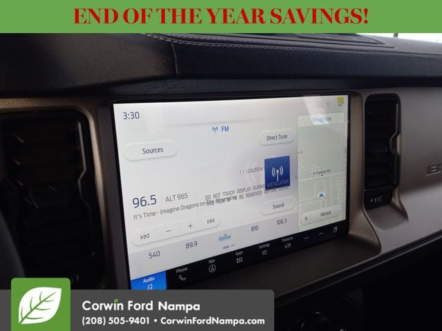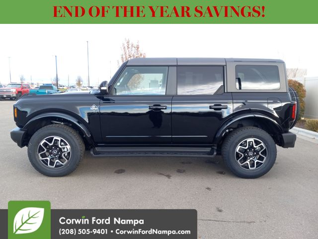 Ford encourages you to stay safe as you go wild with our High Lux Pack, since it adds adaptive cruise control and evasive steering assistance to automatic braking, forward collision warning, lane-keeping assistance, blind-spot monitoring, a rearview camera, hill start assistance, and more. It's time to tame the trail and master the pavement in our Bronco Outer Banks! Save this Page and Call for Availability. We Know You Will Enjoy Your Test Drive Towards Ownership! Corwin Ford Nampa! Friendly service and aggressive pricing is why we are your new and pre-owned vehicle dealer serving, Nampa, Boise, Meridian, Caldwell, Kuna, Eagle, Emmett, Idaho City, Wilder, New Plymouth, Star, Middleton, Weiser, Payette, Horseshoe Bend, Mountain Home, Idaho, and surrounding states. Price does not include Tax, Title, License, $499 Documentation Fee, Subject to availability, Customer must qualify for rebates, See Dealer for Details. $1000 - Bonus Customer Cash. Exp. 01/05/2026 $1000 - Final Days Mega Bonus Cash. Exp. 01/02/2026 $1000 - Retail Bonus Cash. Exp. 01/05/2026
