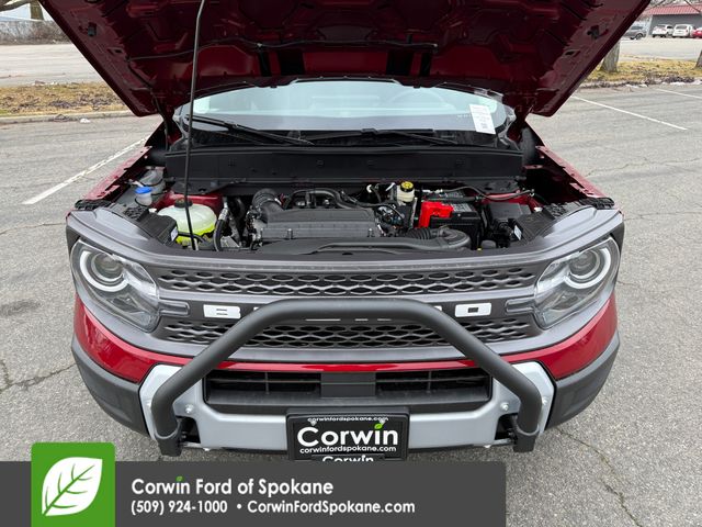 Recent Arrival! Our 2025 Ford Bronco Sport Big Bend 4X4 with the Black Diamond Off-Road Pack in Ruby Red Metallic has an adventurous spirit! Powered by a TurboCharged 1.5 Liter EcoBoost 3 Cylinder delivering 181hp to an 8 Speed Automatic transmission that's eager for action. This Four Wheel Drive SUV also features five performance modes for tackling tough terrain, and it scores nearly 28mpg on the highway. Undeniably bold, our Bronco Sport loves getting dirty and cleans up well to show off LED lighting, a distinctive white-letter grille, a multifunction liftgate, and Black Diamond upgrades like steel-plated bumpers, steel skid plates, a brush guard, 17-inch alloy wheels, and recovery hooks.