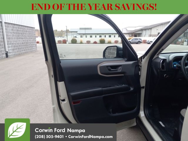 Ford charts a safer course forward with automatic emergency braking, adaptive cruise control, blind-spot monitoring, lane-keeping assistance, a rearview camera, and more. Our Bronco Sport Big Bend embodies a bold spirit of adventure! Save this Page and Call for Availability. We Know You Will Enjoy Your Test Drive Towards Ownership! Corwin Ford Nampa! Friendly service and aggressive pricing is why we are your new and pre-owned vehicle dealer serving, Nampa, Boise, Meridian, Caldwell, Kuna, Eagle, Emmett, Idaho City, Wilder, New Plymouth, Star, Middleton, Weiser, Payette, Horseshoe Bend, Mountain Home, Idaho, and surrounding states. Price does not include Tax, Title, License, $499 Documentation Fee, Subject to availability, Customer must qualify for rebates, See Dealer for Details. $1000 - Bonus Customer Cash. Exp. 01/05/2026 $1000 - Final Days Mega Bonus Cash. Exp. 01/02/2026 $500 - Retail Bonus Cash. Exp. 01/05/2026 $500 - Retail Bonus Cash. Exp. 01/05/2026