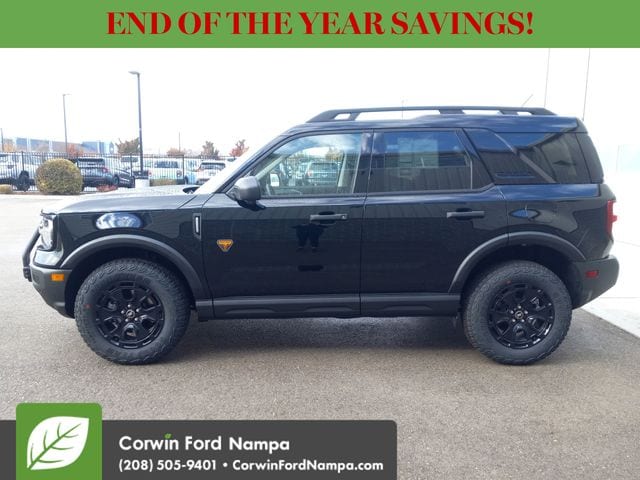 Ford's Co-Pilot360 tech is on board for smart safety, protecting owners with blind-spot monitoring, adaptive cruise control, automatic braking, a rearview camera, lane-keeping assistance, rear cross-traffic alert, and more. Our Bronco Sport Badlands embodies a bold spirit of adventure! Save this Page and Call for Availability. We Know You Will Enjoy Your Test Drive Towards Ownership! Corwin Ford Nampa! Friendly service and aggressive pricing is why we are your new and pre-owned vehicle dealer serving, Nampa, Boise, Meridian, Caldwell, Kuna, Eagle, Emmett, Idaho City, Wilder, New Plymouth, Star, Middleton, Weiser, Payette, Horseshoe Bend, Mountain Home, Idaho, and surrounding states. Price does not include Tax, Title, License, $499 Documentation Fee, Subject to availability, Customer must qualify for rebates, See Dealer for Details. $1000 - Bonus Customer Cash. Exp. 01/05/2026 $1000 - Final Days Mega Bonus Cash. Exp. 01/02/2026 $500 - Retail Bonus Cash. Exp. 01/05/2026 $500 - Retail Bonus Cash. Exp. 01/05/2026