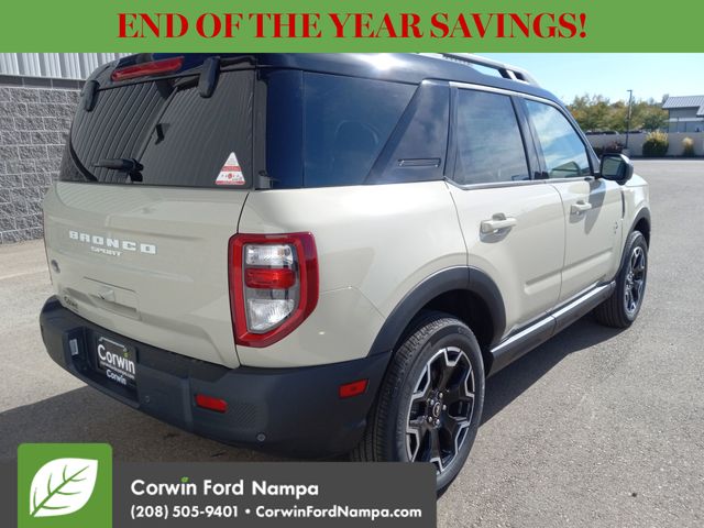 For safety's sake, Ford technologies like adaptive cruise control, blind-spot monitoring, a rearview camera, automatic braking, lane-keeping assistance, rear cross-traffic alert, and more are standard. Our Bronco Sport Outer Banks embodies a bold spirit of adventure! Save this Page and Call for Availability. We Know You Will Enjoy Your Test Drive Towards Ownership! Corwin Ford Nampa! Friendly service and aggressive pricing is why we are your new and pre-owned vehicle dealer serving, Nampa, Boise, Meridian, Caldwell, Kuna, Eagle, Emmett, Idaho City, Wilder, New Plymouth, Star, Middleton, Weiser, Payette, Horseshoe Bend, Mountain Home, Idaho, and surrounding states. Price does not include Tax, Title, License, $499 Documentation Fee, Subject to availability, Customer must qualify for rebates, See Dealer for Details. $1000 - Bonus Customer Cash. Exp. 01/05/2026 $1000 - Final Days Mega Bonus Cash. Exp. 01/02/2026 $500 - Retail Bonus Cash. Exp. 01/05/2026 $500 - Retail Bonus Cash. Exp. 01/05/2026