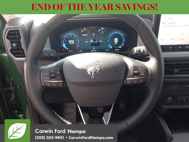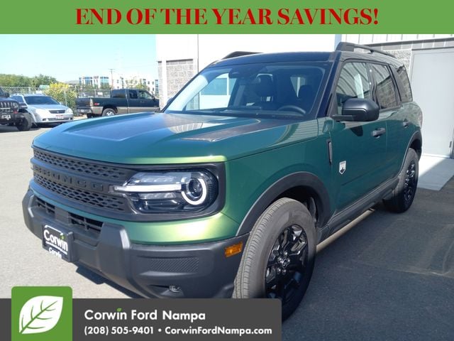 Ford charts a safer course forward with automatic emergency braking, adaptive cruise control, blind-spot monitoring, lane-keeping assistance, a rearview camera, and more. Our Bronco Sport Big Bend embodies a bold spirit of adventure! Save this Page and Call for Availability. We Know You Will Enjoy Your Test Drive Towards Ownership! Corwin Ford Nampa! Friendly service and aggressive pricing is why we are your new and pre-owned vehicle dealer serving, Nampa, Boise, Meridian, Caldwell, Kuna, Eagle, Emmett, Idaho City, Wilder, New Plymouth, Star, Middleton, Weiser, Payette, Horseshoe Bend, Mountain Home, Idaho, and surrounding states. Price does not include Tax, Title, License, $499 Documentation Fee, Subject to availability, Customer must qualify for rebates, See Dealer for Details. $1000 - Bonus Customer Cash. Exp. 01/05/2026 $1000 - Final Days Mega Bonus Cash. Exp. 01/02/2026 $500 - Retail Bonus Cash. Exp. 01/05/2026 $500 - Retail Bonus Cash. Exp. 01/05/2026