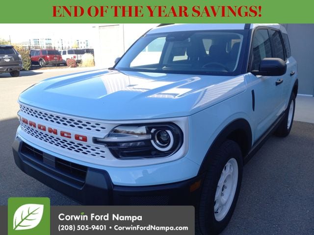 But you're not just well-connected. You're well protected by Ford safety measures such as blind-spot monitoring, lane-keeping assistance, automatic braking, adaptive cruise control, a rearview camera, and more. Our Bronco Sport Heritage embodies a bold spirit of adventure! Save this Page and Call for Availability. We Know You Will Enjoy Your Test Drive Towards Ownership! Corwin Ford Nampa! Friendly service and aggressive pricing is why we are your new and pre-owned vehicle dealer serving, Nampa, Boise, Meridian, Caldwell, Kuna, Eagle, Emmett, Idaho City, Wilder, New Plymouth, Star, Middleton, Weiser, Payette, Horseshoe Bend, Mountain Home, Idaho, and surrounding states. Price does not include Tax, Title, License, $499 Documentation Fee, Subject to availability, Customer must qualify for rebates, See Dealer for Details. $1000 - Bonus Customer Cash. Exp. 01/05/2026 $1000 - Final Days Mega Bonus Cash. Exp. 01/02/2026 $500 - Retail Bonus Cash. Exp. 01/05/2026 $500 - Retail Bonus Cash. Exp. 01/05/2026