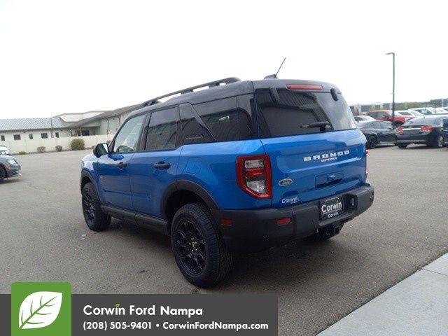 Conquer the road in our 2025 Ford Bronco Sport Badlands 4X4 is featured in Velocity Blue Metallic! Motivated by a TurboCharged 2.0 Liter EcoBoost 4 Cylinder supplying 250hp to an 8 Speed Automatic transmission engineered for rewarding capability. This Four Wheel Drive SUV can also run wild with an off-road suspension, a twin-clutch rear drive unit, and Trail Control, and it returns nearly 26mpg on the highway. Eager for action, our Bronco Sport has LED lighting, fog lamps, metal bash plates, front tow hooks, a flip-up rear glass, liftgate flood lamps, a hatch-mounted bottle opener, and a black roof with safari-style side rails.