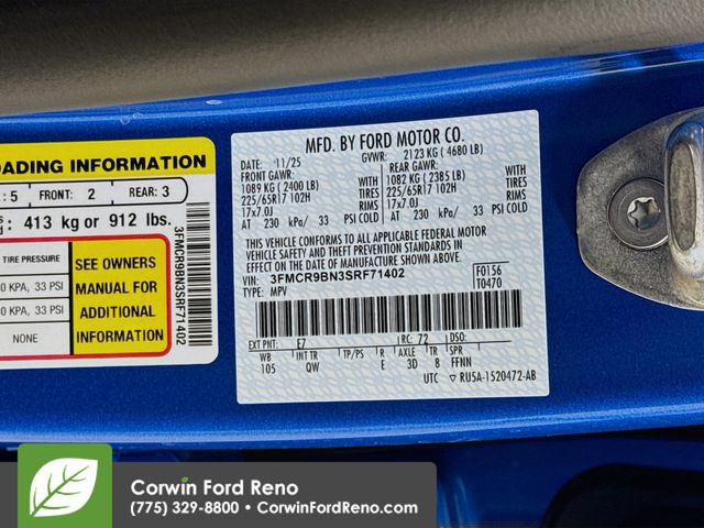 See us today at Corwin Ford Reno or call us at (775) 329-8800. Family owned for over 100 years! Excellent selection of New and Used vehicles, Financing options. Serving Reno, Carson City, Sparks, the North Valleyâs, Spanish Springs, Verdi, Virginia City, the Carson Valley, and Northern Nevada. *All Prices plus applicable sales tax, and a license, and documentary service fee of $627.75 will be added to sales price or capitalized cost of the vehicle. One vehicle unless otherwise noted and subject to prior sale without notice. While supplies last. EPA mileage estimates are for newly manufactured vehicles only. Your actual mileage will vary depending on how you drive and maintain your vehicle. Rebates included: $1000 - Bonus Customer Cash. Exp. 01/05/2026 $1000 - Final Days Mega Bonus Cash. Exp. 01/02/2026 $500 - Retail Bonus Cash. Exp. 01/05/2026 $500 - Retail Bonus Cash. Exp. 01/05/2026