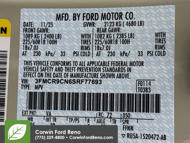 See us today at Corwin Ford Reno or call us at (775) 329-8800. Family owned for over 100 years! Excellent selection of New and Used vehicles, Financing options. Serving Reno, Carson City, Sparks, the North Valleyâs, Spanish Springs, Verdi, Virginia City, the Carson Valley, and Northern Nevada. *All Prices plus applicable sales tax, and a license, and documentary service fee of $627.75 will be added to sales price or capitalized cost of the vehicle. One vehicle unless otherwise noted and subject to prior sale without notice. While supplies last. EPA mileage estimates are for newly manufactured vehicles only. Your actual mileage will vary depending on how you drive and maintain your vehicle. Rebates included: $1000 - Bonus Customer Cash. Exp. 01/05/2026 $1000 - Final Days Mega Bonus Cash. Exp. 01/02/2026 $500 - Retail Bonus Cash. Exp. 01/05/2026 $500 - Retail Bonus Cash. Exp. 01/05/2026