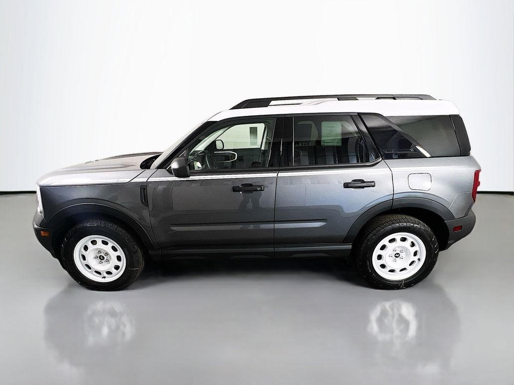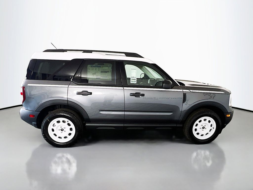 Our 2025 Ford Bronco Sport Heritage 4X4 with the Convenience Pack can help express your bold spirit of adventure in Carbonized Gray Metallic! Motivated by a TurboCharged 1.5 Liter EcoBoost 3 Cylinder generating 181hp for an 8 Speed Automatic transmission for intelligent capability owners love. Engineered with multiple modes to help you go over any terrain, this Four Wheel Drive SUV sees nearly 29mpg on the highway with a retro-themed exterior. Check out the white-painted safari-style roof, white alloy wheels, LED lighting, exclusive decals, roof rails, liftgate floodlights, and our Convenience Pack for LED fog lamps.
