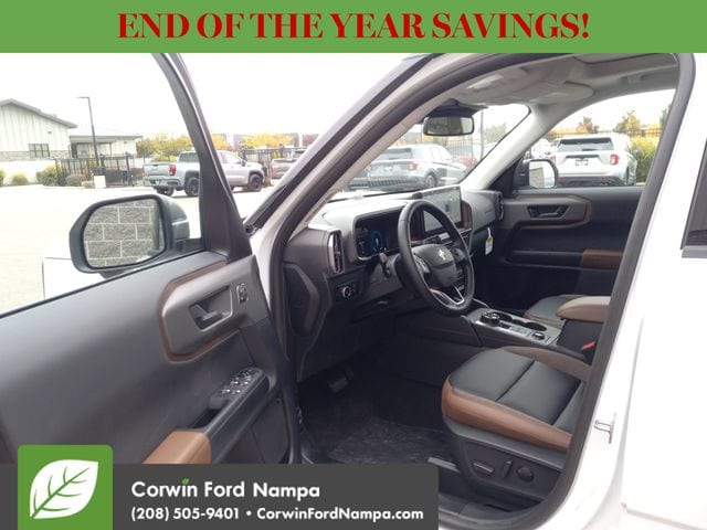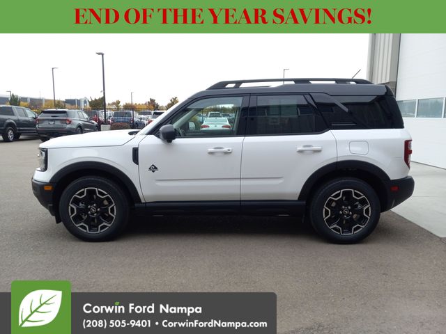 For safety's sake, Ford technologies like adaptive cruise control, blind-spot monitoring, a rearview camera, automatic braking, lane-keeping assistance, rear cross-traffic alert, and more are standard. Our Bronco Sport Outer Banks embodies a bold spirit of adventure! Save this Page and Call for Availability. We Know You Will Enjoy Your Test Drive Towards Ownership! Corwin Ford Nampa! Friendly service and aggressive pricing is why we are your new and pre-owned vehicle dealer serving, Nampa, Boise, Meridian, Caldwell, Kuna, Eagle, Emmett, Idaho City, Wilder, New Plymouth, Star, Middleton, Weiser, Payette, Horseshoe Bend, Mountain Home, Idaho, and surrounding states. Price does not include Tax, Title, License, $499 Documentation Fee, Subject to availability, Customer must qualify for rebates, See Dealer for Details. $1000 - Bonus Customer Cash. Exp. 01/05/2026 $1000 - Final Days Mega Bonus Cash. Exp. 01/02/2026 $500 - Retail Bonus Cash. Exp. 01/05/2026 $500 - Retail Bonus Cash. Exp. 01/05/2026