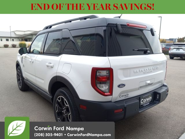 Smart and adventurous, our 2025 Ford Bronco Sport Outer Banks 4X4 with the Tech Pack in Oxford White is the best choice for your lifestyle! Motivated by a TurboCharged 1.5 Liter EcoBoost 3 Cylinder supplying 181hp to an 8 Speed Automatic transmission engineered for real-world capability. This Four Wheel Drive SUV also lets you fine-tune performance with a multi-mode terrain system, and it returns nearly 28mpg on the highway. Rugged and distinctive, our Bronco Sport looks good on the road or off with a stylish Shadow Black roof, LED lighting, fog lamps, a flip-up rear window, and alloy wheels.
