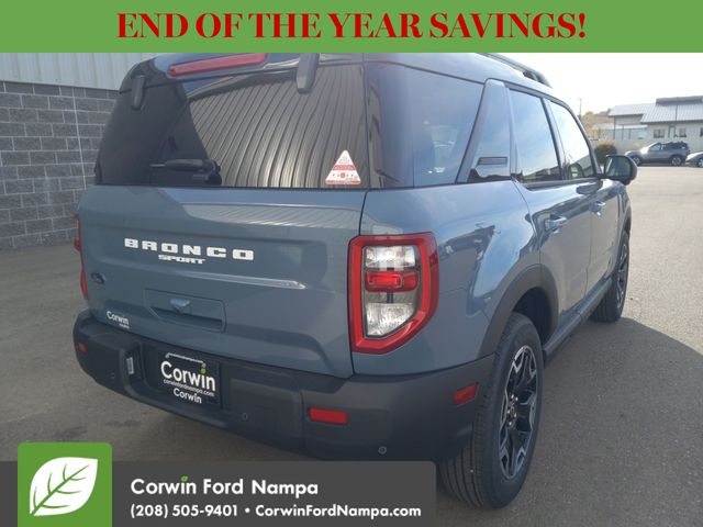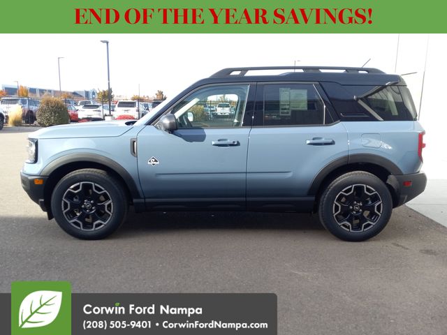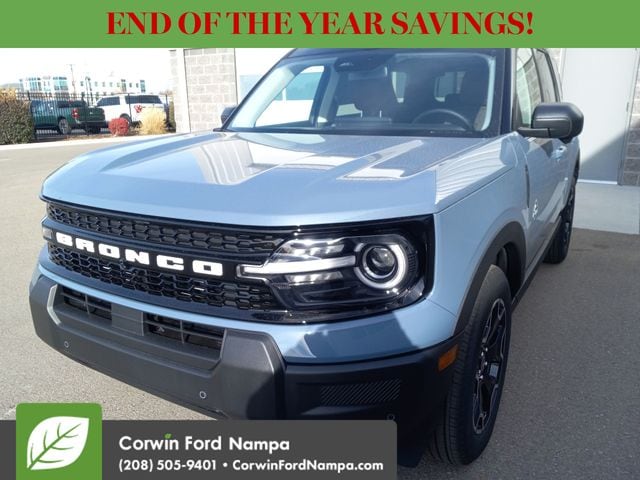 For safety's sake, Ford technologies like adaptive cruise control, blind-spot monitoring, a rearview camera, automatic braking, lane-keeping assistance, rear cross-traffic alert, and more are standard. Our Bronco Sport Outer Banks embodies a bold spirit of adventure! Save this Page and Call for Availability. We Know You Will Enjoy Your Test Drive Towards Ownership! Corwin Ford Nampa! Friendly service and aggressive pricing is why we are your new and pre-owned vehicle dealer serving, Nampa, Boise, Meridian, Caldwell, Kuna, Eagle, Emmett, Idaho City, Wilder, New Plymouth, Star, Middleton, Weiser, Payette, Horseshoe Bend, Mountain Home, Idaho, and surrounding states. Price does not include Tax, Title, License, $499 Documentation Fee, Subject to availability, Customer must qualify for rebates, See Dealer for Details. $1000 - Bonus Customer Cash. Exp. 01/05/2026 $1000 - Final Days Mega Bonus Cash. Exp. 01/02/2026 $500 - Retail Bonus Cash. Exp. 01/05/2026 $500 - Retail Bonus Cash. Exp. 01/05/2026