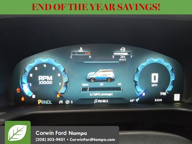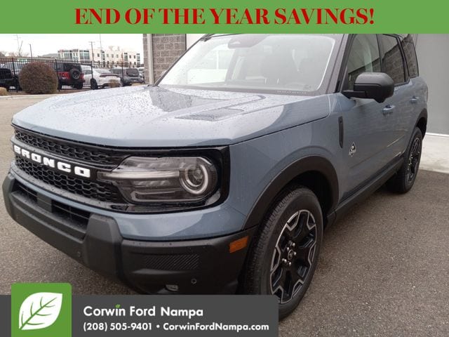 For safety's sake, Ford technologies like adaptive cruise control, blind-spot monitoring, a rearview camera, automatic braking, lane-keeping assistance, rear cross-traffic alert, and more are standard. Our Bronco Sport Outer Banks embodies a bold spirit of adventure! Save this Page and Call for Availability. We Know You Will Enjoy Your Test Drive Towards Ownership! Corwin Ford Nampa! Friendly service and aggressive pricing is why we are your new and pre-owned vehicle dealer serving, Nampa, Boise, Meridian, Caldwell, Kuna, Eagle, Emmett, Idaho City, Wilder, New Plymouth, Star, Middleton, Weiser, Payette, Horseshoe Bend, Mountain Home, Idaho, and surrounding states. Price does not include Tax, Title, License, $499 Documentation Fee, Subject to availability, Customer must qualify for rebates, See Dealer for Details. $1000 - Bonus Customer Cash. Exp. 01/05/2026 $1000 - Final Days Mega Bonus Cash. Exp. 01/02/2026 $500 - Retail Bonus Cash. Exp. 01/05/2026 $500 - Retail Bonus Cash. Exp. 01/05/2026