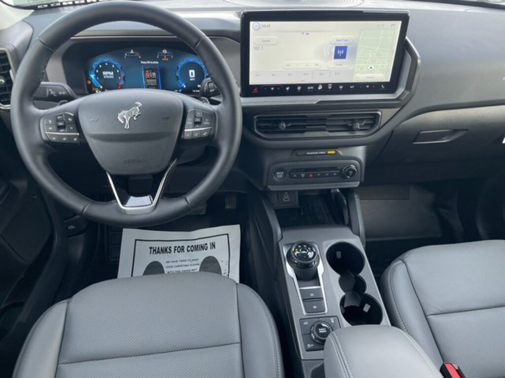 Recent Arrival! Impress the world in this 2025 Ford Bronco Sport Badlands 4X4 with the Tech Pack in Oxford White! Motivated by a TurboCharged 2.0 Liter EcoBoost 4 Cylinder supplying 250hp to an 8 Speed Automatic transmission engineered for rewarding capability. This Four Wheel Drive SUV can also run wild with an off-road suspension, a twin-clutch rear drive unit, and Trail Control, and it returns nearly 26mpg on the highway. Eager for action, our Bronco Sport has LED lighting, fog lamps, metal bash plates, front tow hooks, a flip-up rear glass, liftgate flood lamps, a hatch-mounted bottle opener, a sunroof, and a black roof with safari-style side rails.