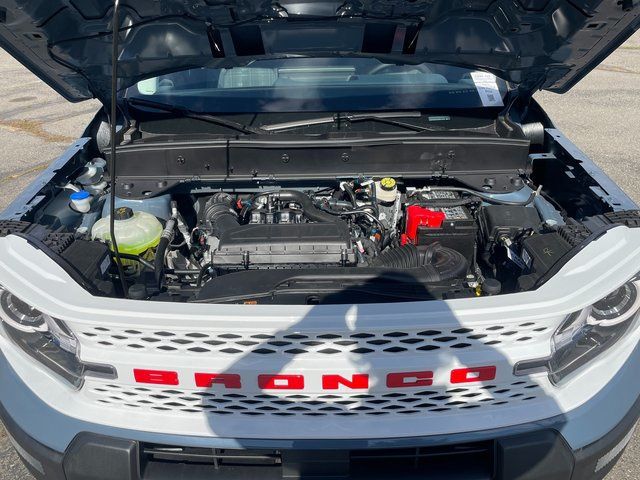 Recent Arrival! Take your next adventure in our 2025 Ford Bronco Sport Heritage 4X4 with the Convenience Pack displayed in an Azure Gray design! Motivated by a TurboCharged 1.5 Liter EcoBoost 3 Cylinder generating 181hp for an 8 Speed Automatic transmission for intelligent capability owners love. Engineered with multiple modes to help you go over any terrain, this Four Wheel Drive SUV sees nearly 29mpg on the highway with a retro-themed exterior. Check out the white-painted safari-style roof, white alloy wheels, LED lighting, exclusive decals, roof rails, liftgate floodlights, and our Convenience Pack for LED fog lamps.