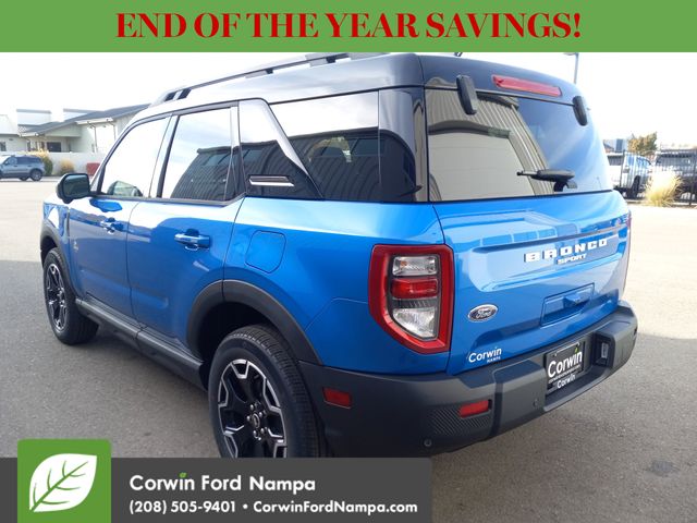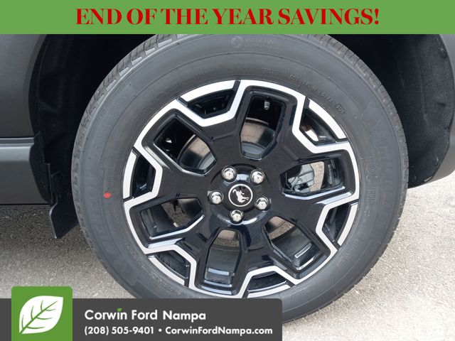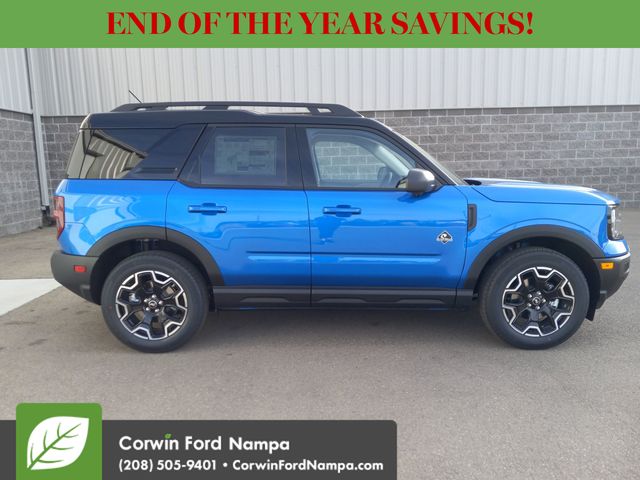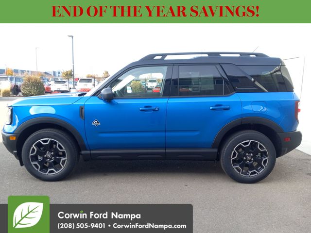 For safety's sake, Ford technologies like adaptive cruise control, blind-spot monitoring, a rearview camera, automatic braking, lane-keeping assistance, rear cross-traffic alert, and more are standard. Our Bronco Sport Outer Banks embodies a bold spirit of adventure! Save this Page and Call for Availability. We Know You Will Enjoy Your Test Drive Towards Ownership! Corwin Ford Nampa! Friendly service and aggressive pricing is why we are your new and pre-owned vehicle dealer serving, Nampa, Boise, Meridian, Caldwell, Kuna, Eagle, Emmett, Idaho City, Wilder, New Plymouth, Star, Middleton, Weiser, Payette, Horseshoe Bend, Mountain Home, Idaho, and surrounding states. Price does not include Tax, Title, License, $499 Documentation Fee, Subject to availability, Customer must qualify for rebates, See Dealer for Details. $1000 - Bonus Customer Cash. Exp. 01/05/2026 $1000 - Final Days Mega Bonus Cash. Exp. 01/02/2026 $500 - Retail Bonus Cash. Exp. 01/05/2026 $500 - Retail Bonus Cash. Exp. 01/05/2026