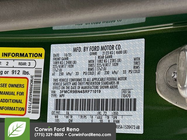 Great Deals are happening now at Corwin Ford Reno. Family owned for over 100 years! Corwin Ford Reno is proud to offer this. 2025 Ford Bronco Sport Priced below KBB Fair Purchase Price! Factory MSRP: $34,085 $6,549 off MSRP!