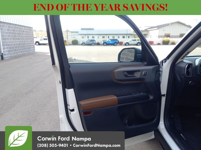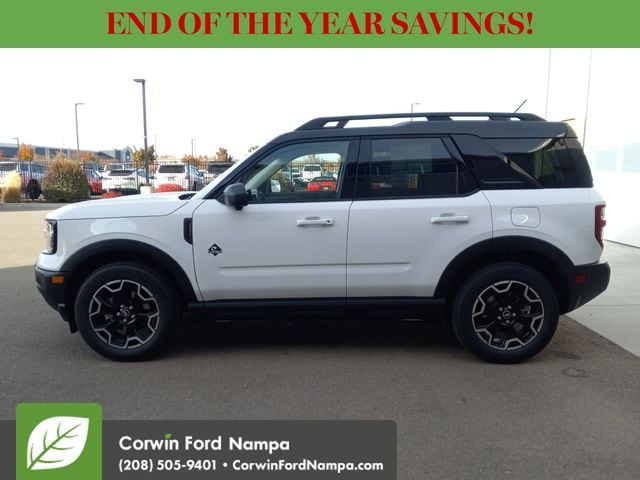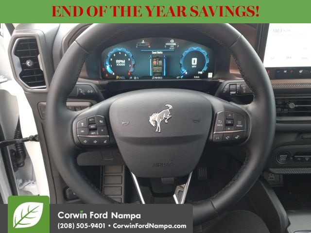 For safety's sake, Ford technologies like adaptive cruise control, blind-spot monitoring, a rearview camera, automatic braking, lane-keeping assistance, rear cross-traffic alert, and more are standard. Our Bronco Sport Outer Banks embodies a bold spirit of adventure! Save this Page and Call for Availability. We Know You Will Enjoy Your Test Drive Towards Ownership! Corwin Ford Nampa! Friendly service and aggressive pricing is why we are your new and pre-owned vehicle dealer serving, Nampa, Boise, Meridian, Caldwell, Kuna, Eagle, Emmett, Idaho City, Wilder, New Plymouth, Star, Middleton, Weiser, Payette, Horseshoe Bend, Mountain Home, Idaho, and surrounding states. Price does not include Tax, Title, License, $499 Documentation Fee, Subject to availability, Customer must qualify for rebates, See Dealer for Details. $1000 - Bonus Customer Cash. Exp. 01/05/2026 $1000 - Final Days Mega Bonus Cash. Exp. 01/02/2026 $500 - Retail Bonus Cash. Exp. 01/05/2026 $500 - Retail Bonus Cash. Exp. 01/05/2026