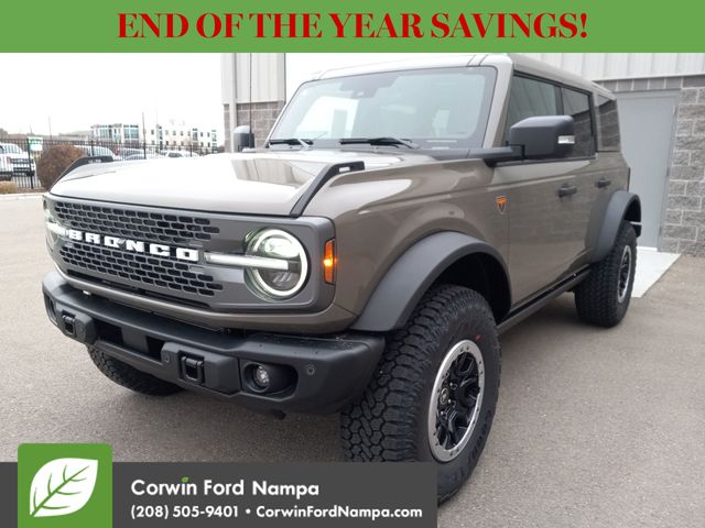 Ford helps seal the deal with lane-keeping assistance, automatic braking, blind-spot monitoring, forward collision warning, a rearview camera, hill start assistance, trailer sway control, tire pressure monitoring, stability/traction control, and more. You can get ready to go wild in our Bronco Badlands! Save this Page and Call for Availability. We Know You Will Enjoy Your Test Drive Towards Ownership! Corwin Ford Nampa! Friendly service and aggressive pricing is why we are your new and pre-owned vehicle dealer serving, Nampa, Boise, Meridian, Caldwell, Kuna, Eagle, Emmett, Idaho City, Wilder, New Plymouth, Star, Middleton, Weiser, Payette, Horseshoe Bend, Mountain Home, Idaho, and surrounding states. Price does not include Tax, Title, License, $499 Documentation Fee, Subject to availability, Customer must qualify for rebates, See Dealer for Details. $1000 - Bonus Customer Cash. Exp. 01/05/2026 $1000 - Final Days Mega Bonus Cash. Exp. 01/02/2026 $1000 - Retail Bonus Cash. Exp. 01/05/2026