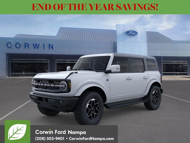 Ford encourages you to stay safe as you go wild with our High Lux Pack, since it adds adaptive cruise control and evasive steering assistance to automatic braking, forward collision warning, lane-keeping assistance, blind-spot monitoring, a rearview camera, hill start assistance, and more. It's time to tame the trail and master the pavement in our Bronco Outer Banks! Save this Page and Call for Availability. We Know You Will Enjoy Your Test Drive Towards Ownership! Corwin Ford Nampa! Friendly service and aggressive pricing is why we are your new and pre-owned vehicle dealer serving, Nampa, Boise, Meridian, Caldwell, Kuna, Eagle, Emmett, Idaho City, Wilder, New Plymouth, Star, Middleton, Weiser, Payette, Horseshoe Bend, Mountain Home, Idaho, and surrounding states. Price does not include Tax, Title, License, $499 Documentation Fee, Subject to availability, Customer must qualify for rebates, See Dealer for Details. $1000 - Bonus Customer Cash. Exp. 01/05/2026 $1000 - Final Days Mega Bonus Cash. Exp. 01/02/2026 $1000 - Retail Bonus Cash. Exp. 01/05/2026