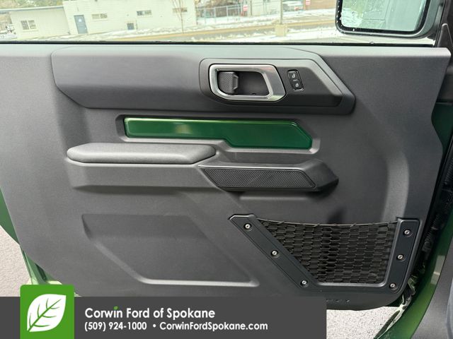 Recent Arrival! Capture your next adventure with our 2025 Ford Bronco 2 Door 4X4 with the Sasquatch Pack in Eruption Green Metallic! Motivated by a TurboCharged 2.3 Liter EcoBoost 4 Cylinder supplying 300hp to a 10 Speed Automatic transmission. This Four Wheel Drive SUV also scores nearly 17mpg on the highway with our Sasquatch Pack for upgraded capability. It adds an advanced 4X4 system, electronic-locking axles, a high-clearance suspension, and 17-inch alloy wheels to bold LED lighting, tow hooks, heated power mirrors, a swing-out tailgate, and removable top/doors. Our Bronco is sure-footed and big-footed with our Sasquatch setup!