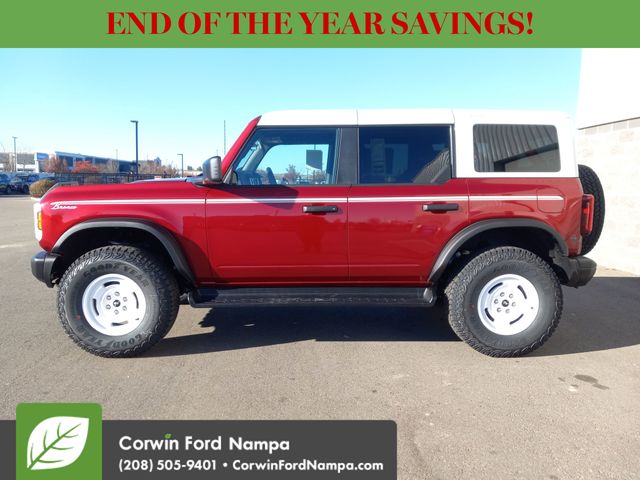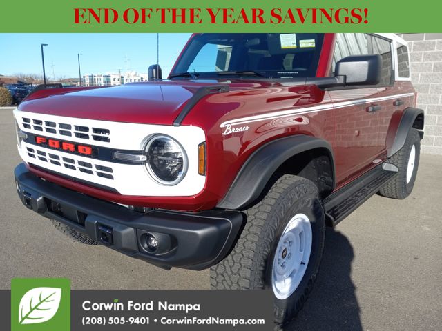 Additional Ford tech benefits can help inspire confidence with blind-spot monitoring, automatic braking, forward collision warning, lane-keeping assistance, a rearview camera, hill start assistance, trailer sway control, stability/traction control, and more. You can get ready to go wild in our Bronco Heritage Edition! Save this Page and Call for Availability. We Know You Will Enjoy Your Test Drive Towards Ownership! Corwin Ford Nampa! Friendly service and aggressive pricing is why we are your new and pre-owned vehicle dealer serving, Nampa, Boise, Meridian, Caldwell, Kuna, Eagle, Emmett, Idaho City, Wilder, New Plymouth, Star, Middleton, Weiser, Payette, Horseshoe Bend, Mountain Home, Idaho, and surrounding states. Price does not include Tax, Title, License, $499 Documentation Fee, Subject to availability, Customer must qualify for rebates, See Dealer for Details. $1000 - Bonus Customer Cash. Exp. 01/05/2026 $1000 - Final Days Mega Bonus Cash. Exp. 01/02/2026 $1000 - Retail Bonus Cash. Exp. 01/05/2026