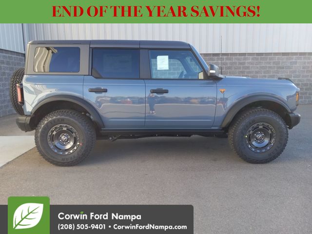 Ford helps seal the deal with lane-keeping assistance, automatic braking, blind-spot monitoring, forward collision warning, a rearview camera, hill start assistance, trailer sway control, tire pressure monitoring, stability/traction control, and more. You can get ready to go wild in our Bronco Badlands! Save this Page and Call for Availability. We Know You Will Enjoy Your Test Drive Towards Ownership! Corwin Ford Nampa! Friendly service and aggressive pricing is why we are your new and pre-owned vehicle dealer serving, Nampa, Boise, Meridian, Caldwell, Kuna, Eagle, Emmett, Idaho City, Wilder, New Plymouth, Star, Middleton, Weiser, Payette, Horseshoe Bend, Mountain Home, Idaho, and surrounding states. Price does not include Tax, Title, License, $499 Documentation Fee, Subject to availability, Customer must qualify for rebates, See Dealer for Details. $1000 - Bonus Customer Cash. Exp. 01/05/2026 $1000 - Final Days Mega Bonus Cash. Exp. 01/02/2026 $1000 - Retail Bonus Cash. Exp. 01/05/2026