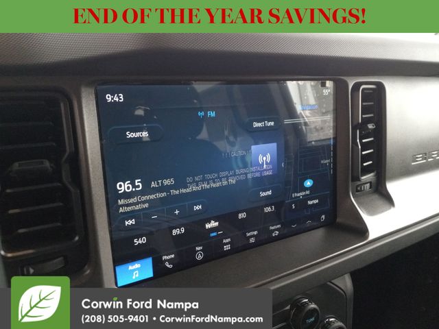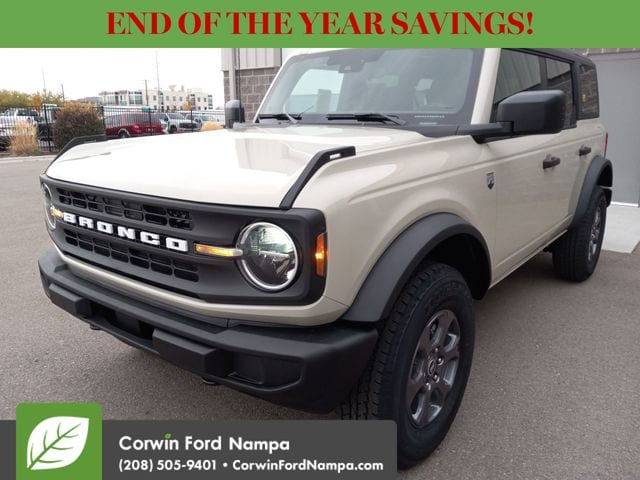 Intelligent Ford safety features can enhance your peace of mind with automatic braking, forward collision warning, a rearview camera, hill start assist, trailer sway control, tire pressure monitoring, stability and traction control, and more. You can get ready to go wild in our Bronco Big Bend! Save this Page and Call for Availability. We Know You Will Enjoy Your Test Drive Towards Ownership! Corwin Ford Nampa! Friendly service and aggressive pricing is why we are your new and pre-owned vehicle dealer serving, Nampa, Boise, Meridian, Caldwell, Kuna, Eagle, Emmett, Idaho City, Wilder, New Plymouth, Star, Middleton, Weiser, Payette, Horseshoe Bend, Mountain Home, Idaho, and surrounding states. Price does not include Tax, Title, License, $499 Documentation Fee, Subject to availability, Customer must qualify for rebates, See Dealer for Details. $1000 - Bonus Customer Cash. Exp. 01/05/2026 $1000 - Final Days Mega Bonus Cash. Exp. 01/02/2026 $1000 - Retail Bonus Cash. Exp. 01/05/2026