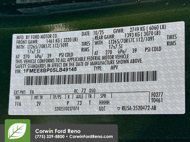 See us today at Corwin Ford Reno or call us at (775) 329-8800. Family owned for over 100 years! Excellent selection of New and Used vehicles, Financing options. Serving Reno, Carson City, Sparks, the North Valleyâs, Spanish Springs, Verdi, Virginia City, the Carson Valley, and Northern Nevada. *All Prices plus applicable sales tax, and a license, and documentary service fee of $727.75 will be added to sales price or capitalized cost of the vehicle. One vehicle unless otherwise noted and subject to prior sale without notice. While supplies last. EPA mileage estimates are for newly manufactured vehicles only. Your actual mileage will vary depending on how you drive and maintain your vehicle. Rebates included: $2500 - Retail Customer Cash. Exp. 03/31/2026