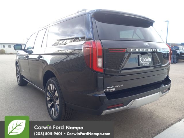 Elevate every journey with bold sophistication, our 2025 Ford Expedition Platinum MAX 4WD in Agate Black Metallic is a luxuriously capable full-size SUV engineered for premium family adventures, extended comfort, and top-tier technology. Motivated by a Twin-TurboCharged 3.5 Liter EcoBoost V6 offering 400hp to a 10 Speed SelectShift Automatic transmission. Continuously controlled damping brings a higher level of comfortable handling, and this extended-wheelbase Four Wheel Drive SUV scores nearly 23mpg on the highway. Our Expedition exterior boasts a panoramic sunroof, LED lighting, fog lamps, zone lighting, power running boards, a power liftgate, alloy wheels, roof rails, and a SecuriCode keypad.