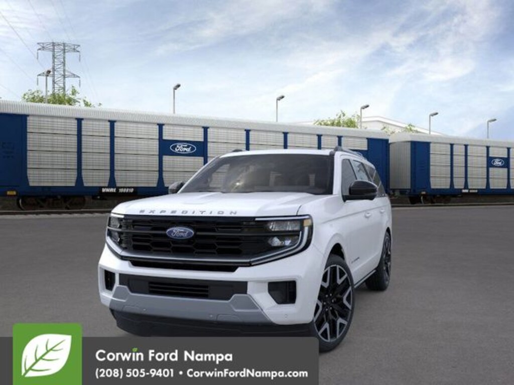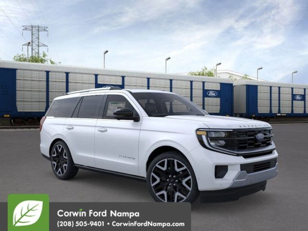 Bold, refined, and ready for anything, our 2025 Ford Expedition Platinum 4WD in Star White Metallic Tri-Coat is a luxuriously capable full-size SUV that blends advanced technology, premium comfort, and rugged performance for unforgettable family adventures. Motivated by a Twin-TurboCharged 3.5 Liter EcoBoost V6 offering 400hp to a 10 Speed SelectShift Automatic transmission that's built Ford tough. Continuously controlled damping brings a higher level of comfortable handling, and this Four Wheel Drive SUV scores nearly 23mpg on the highway. Our Expedition exterior boasts a panoramic sunroof, LED lighting, fog lamps, zone lighting, power running boards, a split liftgate, alloy wheels, roof rails, and a SecuriCode keypad.