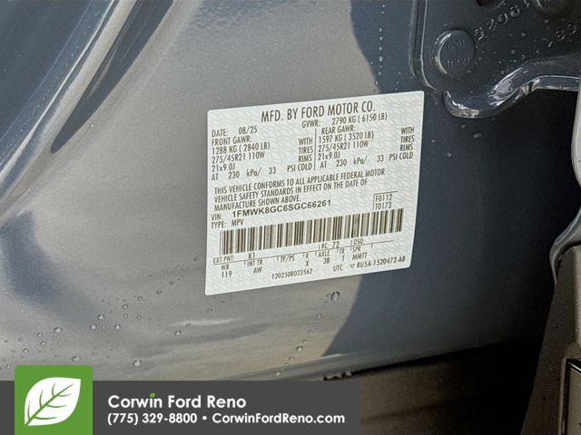 See us today at Corwin Ford Reno or call us at (775) 329-8800. Family owned for over 100 years! Excellent selection of New and Used vehicles, Financing options. Serving Reno, Carson City, Sparks, the North Valleyâs, Spanish Springs, Verdi, Virginia City, the Carson Valley, and Northern Nevada. *All Prices plus applicable sales tax, and a license, and documentary service fee of $627.75 will be added to sales price or capitalized cost of the vehicle. One vehicle unless otherwise noted and subject to prior sale without notice. While supplies last. EPA mileage estimates are for newly manufactured vehicles only. Your actual mileage will vary depending on how you drive and maintain your vehicle. Rebates included: $1000 - Final Days Mega Bonus Cash. Exp. 01/02/2026 $1500 - Bonus Customer Cash. Exp. 01/05/2026