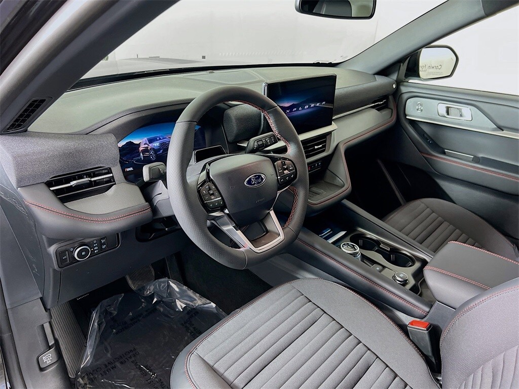 Our 2025 Ford Explorer ST-Line 4WD with the Premium Pack is sporty, spirited, and aerodynamic in Agate Black Metallic! Motivated by a TurboCharged 2.3 Liter EcoBoost 4 Cylinder providing 300hp to a 10 Speed Automatic transmission enhanced by multiple drive modes. This Four Wheel Drive SUV also rides on a responsive suspension, scores nearly 27mpg on the highway, and shows off performance-inspired styling. Our Explorer's exterior highlights include the Premium Pack, which adds multifunction mirrors to backed-out design cues, black roof rails, black skid plate elements, dark 21-inch wheels, a power liftgate, and LED lighting with fog lamps and signature lighting. It's a look for owners who love adventure!