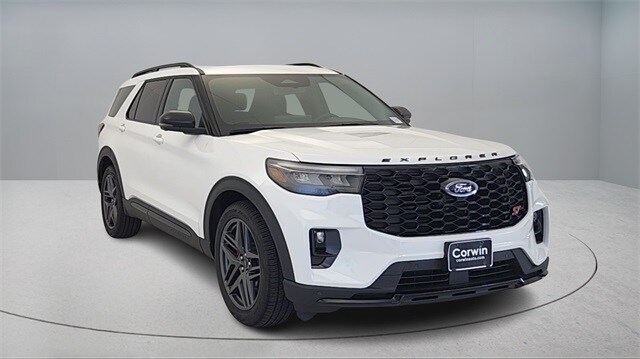 White Metallic 2025 Ford Explorer ST 4WD 4D Sport Utility 3.0L EcoBoost V6 10-Speed Automatic 18/25 City/Highway MPG