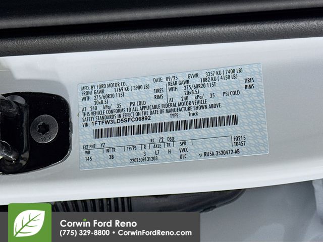 See us today at Corwin Ford Reno or call us at (775) 329-8800. Family owned for over 100 years! Excellent selection of New and Used vehicles, Financing options. Serving Reno, Carson City, Sparks, the North Valleyâs, Spanish Springs, Verdi, Virginia City, the Carson Valley, and Northern Nevada. *All Prices plus applicable sales tax, and a license, and documentary service fee of $627.75 will be added to sales price or capitalized cost of the vehicle. One vehicle unless otherwise noted and subject to prior sale without notice. While supplies last. EPA mileage estimates are for newly manufactured vehicles only. Your actual mileage will vary depending on how you drive and maintain your vehicle. Rebates included: $1000 - Final Days Mega Bonus Cash. Exp. 01/02/2026 $2000 - Retail Bonus Cash. Exp. 01/05/2026 $2000 - Retail Customer Cash. Exp. 01/05/2026