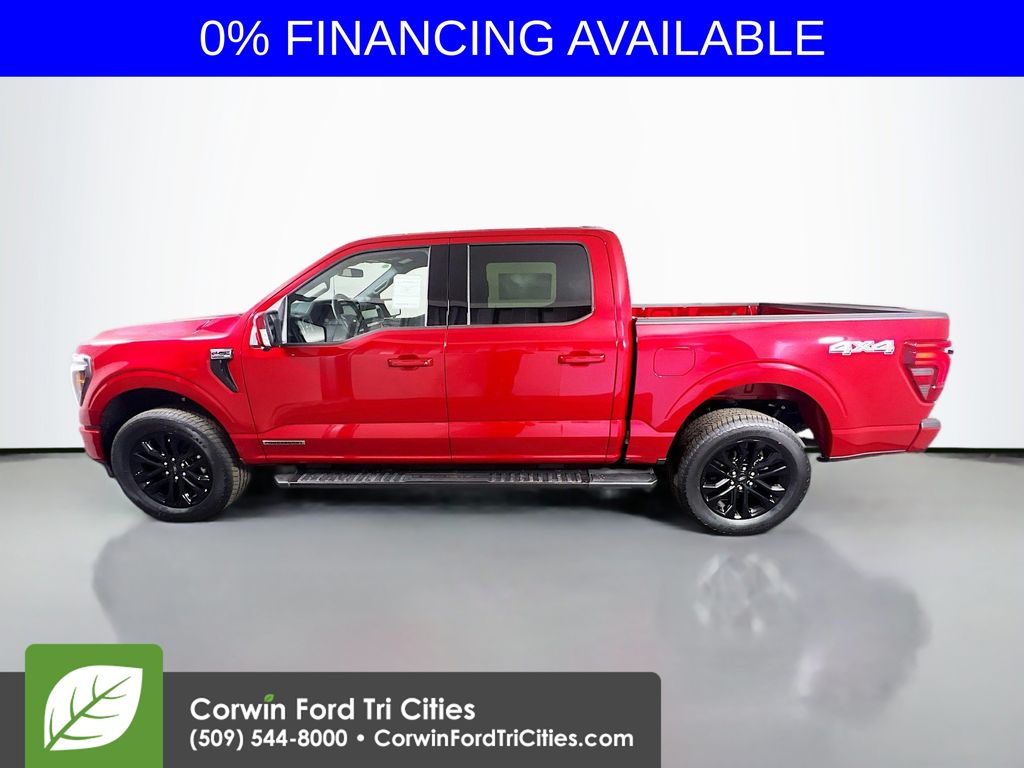 It's time for a rugged roundup with our 2025 Ford F-150 Lariat SuperCrew 4X4 with the Black Appearance Package that radiates toughness in Rapid Red Metallic! Motivated by a Twin-TurboCharged 3.5 Liter PowerBoost V6 and an Electric Motor providing a combined 430hp to a 10 Speed Automatic transmission. Seven performance modes and responsive handling are standard, and this Four Wheel Drive truck scores nearly 24mpg on the highway. Our Ford's bold exterior boasts LED lighting, fog lamps, heated multifunction mirrors, running boards, a Class IV trailer hitch, an onboard generator, and 20-inch Gloss Black wheels.