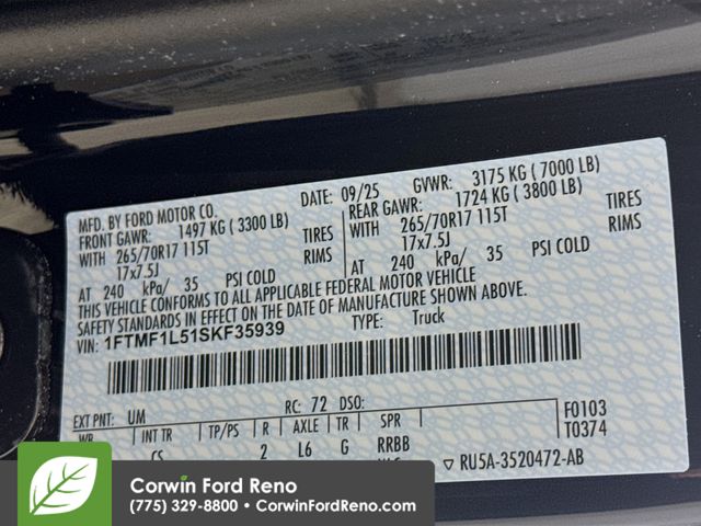 See us today at Corwin Ford Reno or call us at (775) 329-8800. Family owned for over 100 years! Excellent selection of New and Used vehicles, Financing options. Serving Reno, Carson City, Sparks, the North Valleyâs, Spanish Springs, Verdi, Virginia City, the Carson Valley, and Northern Nevada. *All Prices plus applicable sales tax, and a license, and documentary service fee of $627.75 will be added to sales price or capitalized cost of the vehicle. One vehicle unless otherwise noted and subject to prior sale without notice. While supplies last. EPA mileage estimates are for newly manufactured vehicles only. Your actual mileage will vary depending on how you drive and maintain your vehicle. Rebates included: $1000 - Final Days Mega Bonus Cash. Exp. 01/02/2026 $2000 - Retail Customer Cash. Exp. 01/05/2026