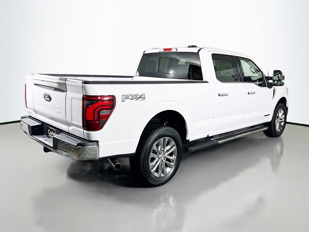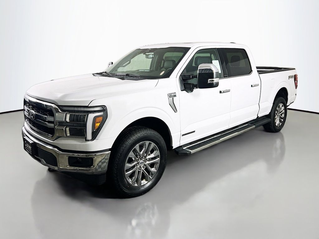 It's time for a rugged roundup with our 2025 Ford F-150 Lariat SuperCrew 4X4 with the FX4 Off-Road Package that radiates toughness in Oxford White! Motivated by a Twin-TurboCharged 3.5 Liter PowerBoost V6 and an Electric Motor providing a combined 430hp to a 10 Speed Automatic transmission. Seven performance modes and responsive handling are standard, and this Four Wheel Drive truck scores nearly 24mpg on the highway. Our Ford's bold exterior boasts the FX4 Off-Road Pack's FX4 decal, hill descent control, monotube shocks, rock crawl mode, Off-Road tuned front shock absorbers, LED lighting, fog lamps, heated multifunction mirrors, running boards, a Class IV trailer hitch, an onboard generator, chrome accents, and chrome-like PVD wheels.