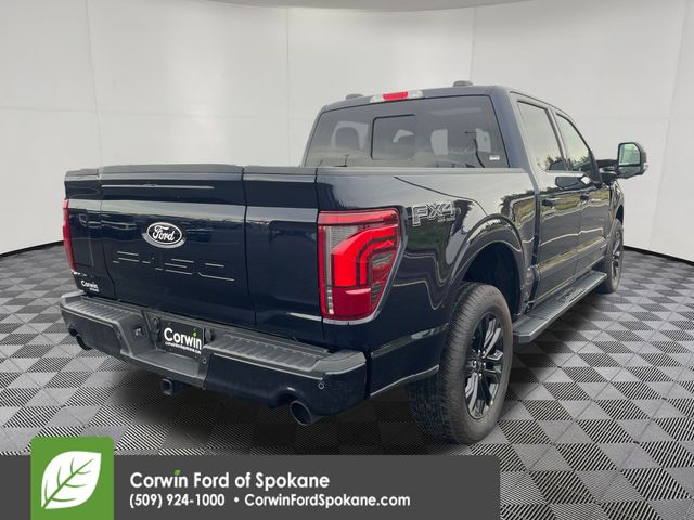 Recent Arrival! Our 2025 Ford F-150 Lariat SuperCrew 4X4 with the FX4 Off-Road Package elevates strength without compromising capability in Antimatter Blue Metallic! Motivated by a Twin-TurboCharged 3.5 Liter PowerBoost V6 and an Electric Motor providing a combined 430hp to a 10 Speed Automatic transmission. Seven performance modes and responsive handling are standard, and this Four Wheel Drive truck scores nearly 24mpg on the highway. Our Ford's bold exterior boasts the FX4 Off-Road Pack's FX4 decal, hill descent control, monotube shocks, rock crawl mode, Off-Road tuned front shock absorbers, LED lighting, fog lamps, heated multifunction mirrors, running boards, twin-panel sunroof, spray-on Bedliner, a Class IV trailer hitch, an onboard generator, chrome accents, and chrome-like PVD wheels.